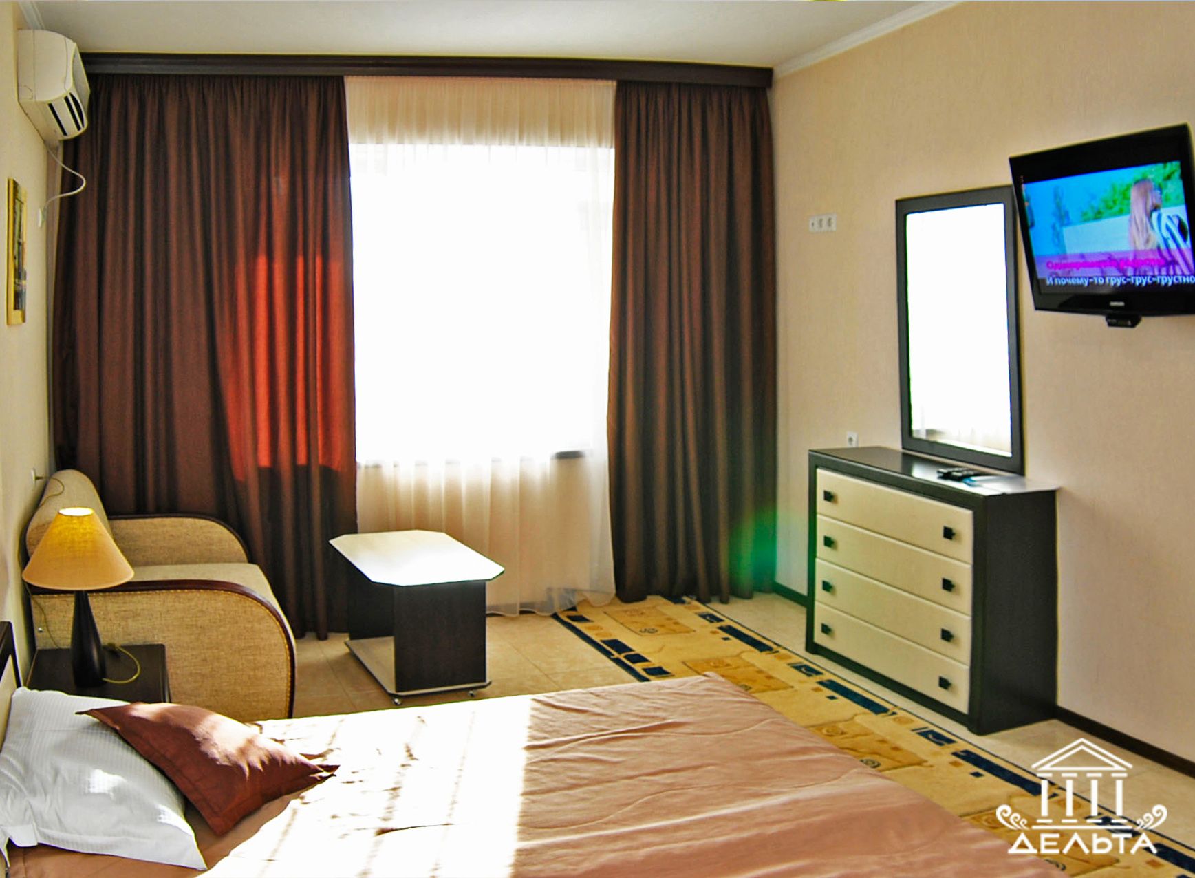 Все номера с видом на море и большими лоджиями. Двухкомнатные номера - номера квартирного типа с раздельными сан блоками, с просторной прихожей, раздельными комнатами. Сплит-система, спутниковое телевидение в каждой комнате, современная отделка и мебель. Корпус сдан в эксплуатацию в 2013 г.